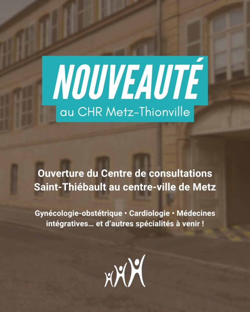 Le 1er décembre, le CHR Metz-Thionville ouvre un nouveau Centre de consultations au centre-ville de Metz : le Centre de consultations Saint-Thiébault – site du CHR Metz-Thionville, un espace moderne, accessible et pensé pour faciliter le parcours de santé des patientes et patients.